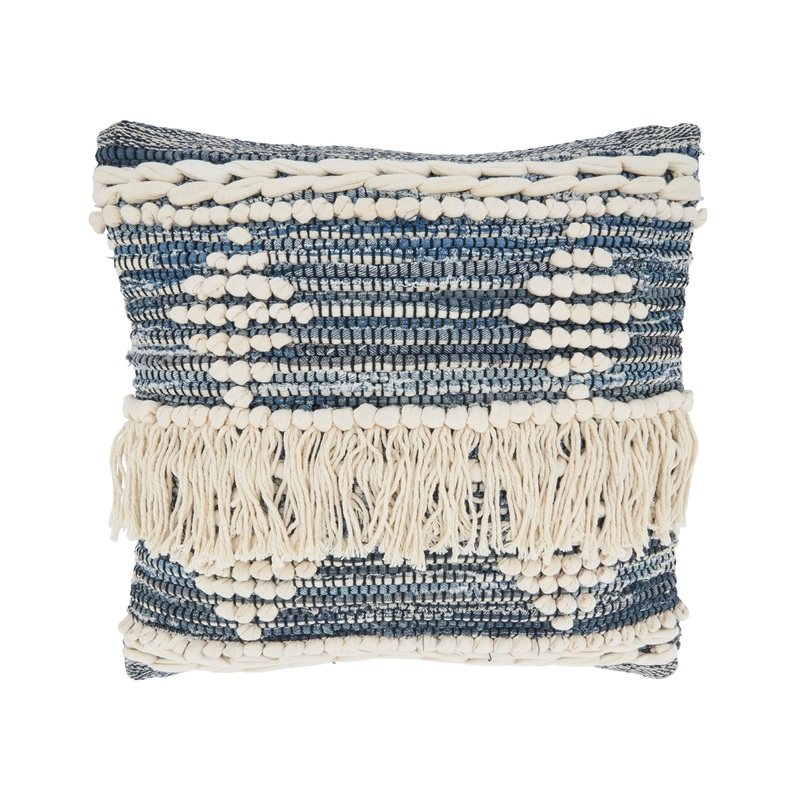 Highly decorative, the Chindi Fringe Throw Pillow brings a unique look and feel to your living room. Featuring a chunky weave design, with 100% cotton construction, this soft and warm pillow adds great texture to any decor. Pair it with solid color throw blankets, or leave on its own as a statement piece.