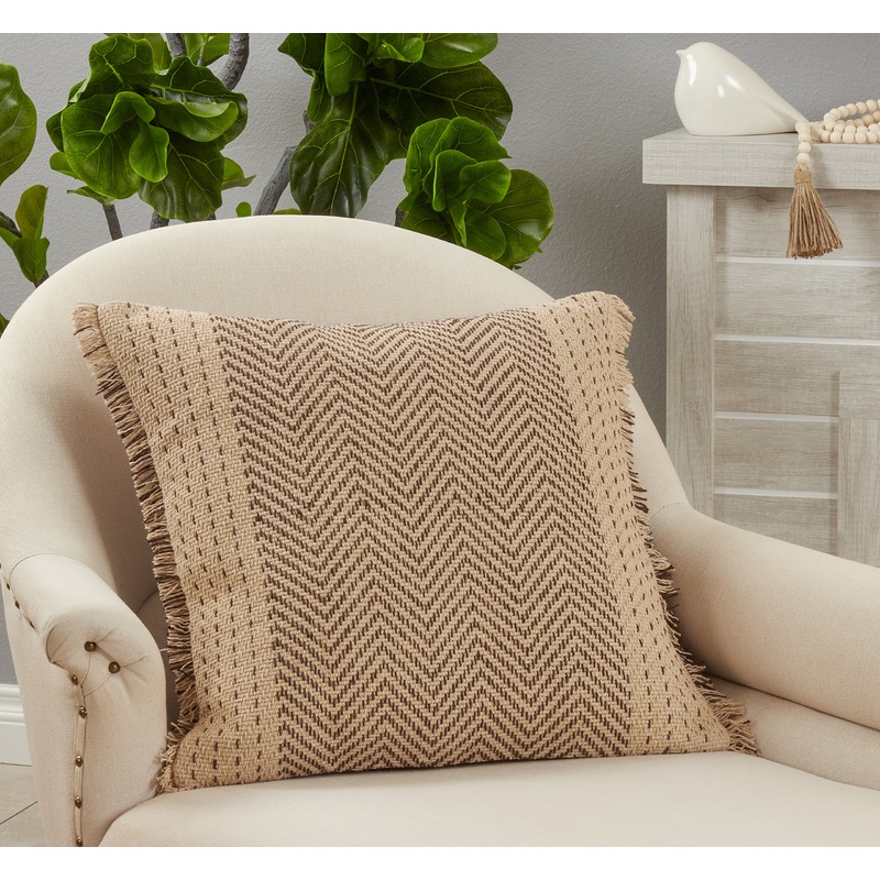 Update your style and decor with this charming Kantha Stitch Throw Pillow. Featuring eastern influences and a very stylish design, the cotton throw pillow works wonderfully in both a living room and a bedroom decor. With a classic chevron pattern in natural colors and fringed edges, the pillow brings tasteful texture to a sofa or armchair.