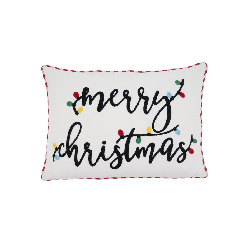 With a cheerful and whimsical design, the Merry Christmas Throw Pillow is all you need to brighten up your decor this holiday season. It features black text on a white background, setting the perfect contrast for the colorful Christmas lights to pop. Made