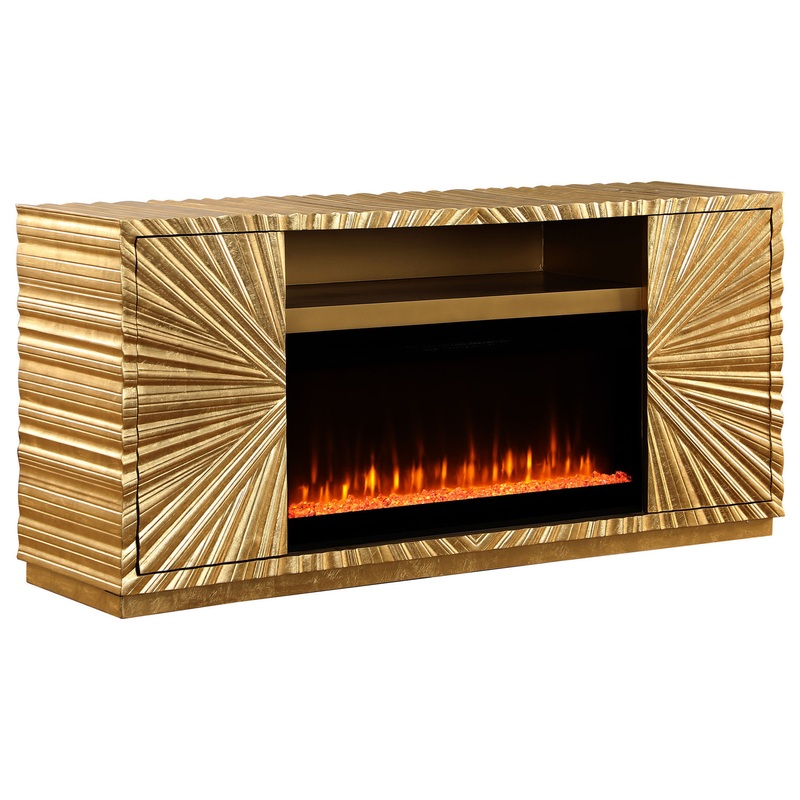 Tiffany Gold Entertainment Center With Electric Fireplace and Open Storage – Contemporary – Entertainment Centers And Tv Stands – by Best Master Furniture