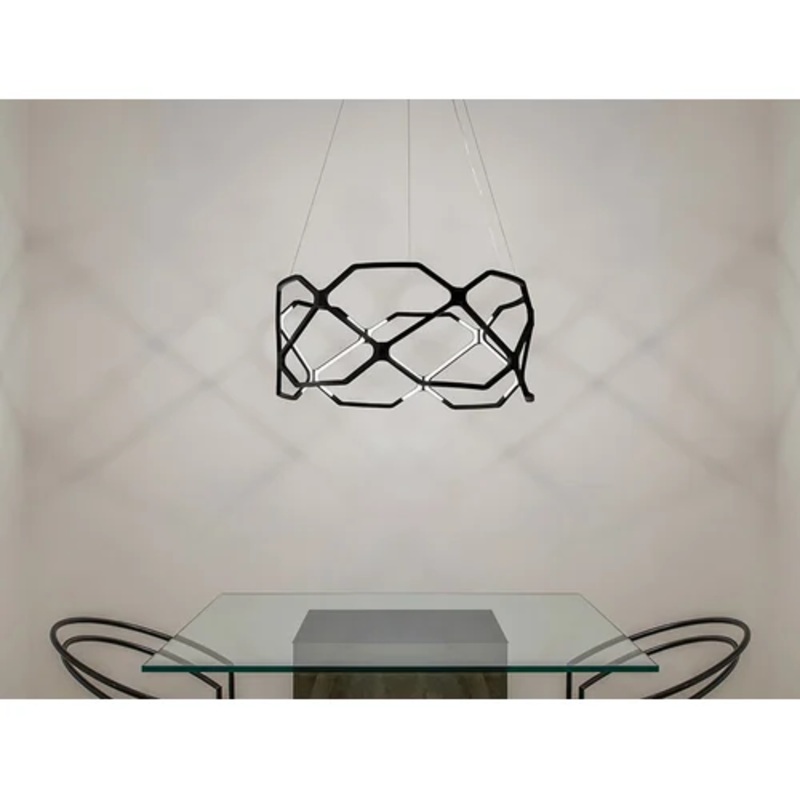 The dematerialisation and miniaturisation of light sources evolve and take a leap into the future in this suspension lamp, Titia Minor is in fact a unique design in which the lamp’s void is filled exclusively by light, creating reflections and highlighting the entire structure. Made of recycled polymer and with quick-release couplings, assembly becomes practical and quick while also conferring a delicate design. Available in a matt black finish, Titia Minor will surprise even the most critical eye by adapting to any type of environment, from living to hospitality.