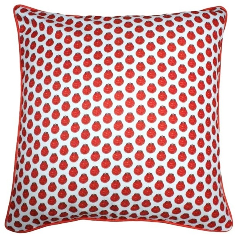 Scallop shell motifs have been used since ancient times in art, architecture and design and the symmetry of its fan-shaped pattern remains familiar and aesthetically pleasing. This small scale scallop shell pattern is printed on a large 26 inch square pillow, making it the perfect backdrop to the other 20 Inch Square pillows from the same collection. A Tracy Upton original design.