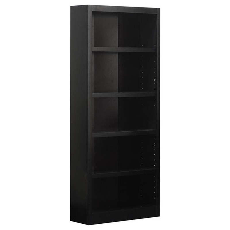The Concepts in Wood 5 shelf single wide Bookcase has a beautiful 10 step finish on wood veneer that really sets this bookshelf apart from the rest and utilizes an environmentally friendly zero VOC emissions finish process. This is a piece of furniture using solid wood trim pieces and wood veneer panels versus all the paper laminate varieties out there. Very durable with 70lb. weight capacity per shelf. 3 adjustable shelves allow you to customize the storage space to accommodate a variety of book sizes and 2 fixed shelves provide structural reinforcement. A dowel and cam lock assembly design ensures a strong durable bookcase. Wood elements are sourced in the USA and assembled in Mexico. This versatile storage bookcase is ideal for home or office use, laundry, bedroom, kitchen, garage or any other room. Ready for assembly.