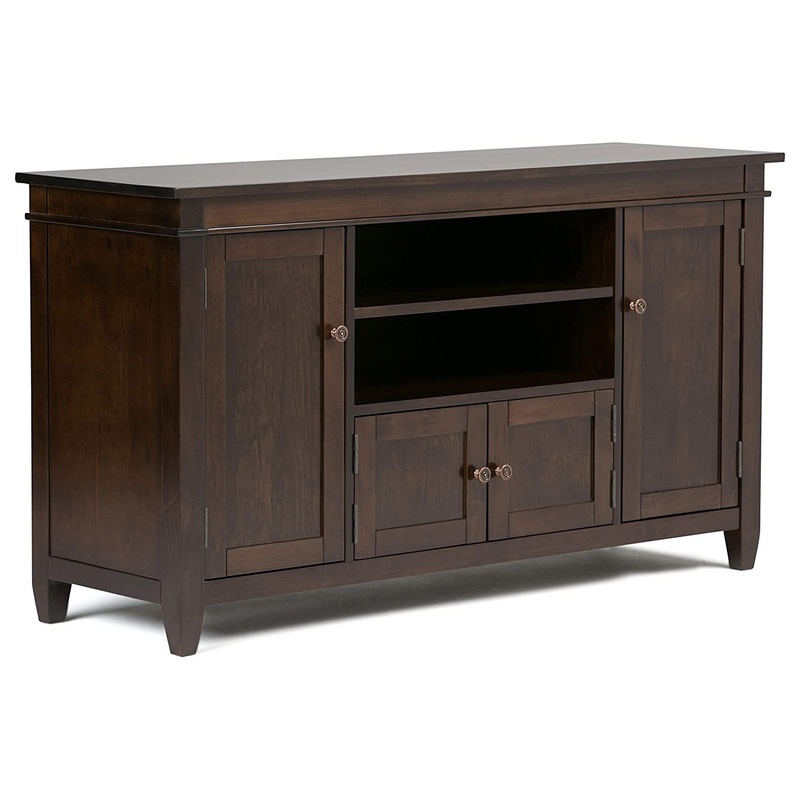 Traditional TV Stand, Spacious Cabinets & Center Open Shelf, Dark Tobacco Brown – Transitional – Entertainment Centers And Tv Stands – by Decorn