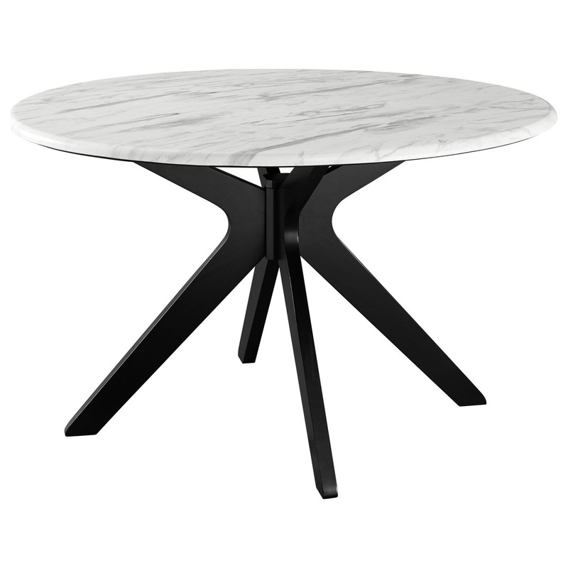 Incorporate intersecting detail and modern influence in your dining space with the Traverse Artificial Marble Performance Dining Table. With a seamless organic shape, this round dining table rests atop an intercrossed base crafted from solid rubberwood. This kitchen table is complete with an artificial marble tabletop that is easy to clean and maintain. This performance tabletop is resistant to stains, scratches, UV light, and small burns. A striking addition to the modern home, Traverse emboldens decor in the dining room or kitchen. Assembly required.