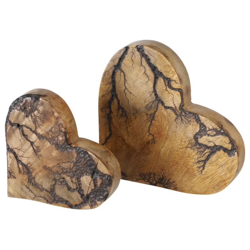 Inspired by nature, the surface of these tree of life hearts are decorated with delicately incised branches across the beautifully grained wood surface. Handcrafted of solid mango wood, lightly stained and finished like fine furniture with a clear coat of lacquer. Expect this set of high quality modern heirlooms to age beautifully. Since each unique piece is made by hand of natural wood, no two will be exactly alike. Rendered with artistic finesse, hearts will stand out on any shelf or table while offering a calm, rustic vibe. Always, a welcome gift.