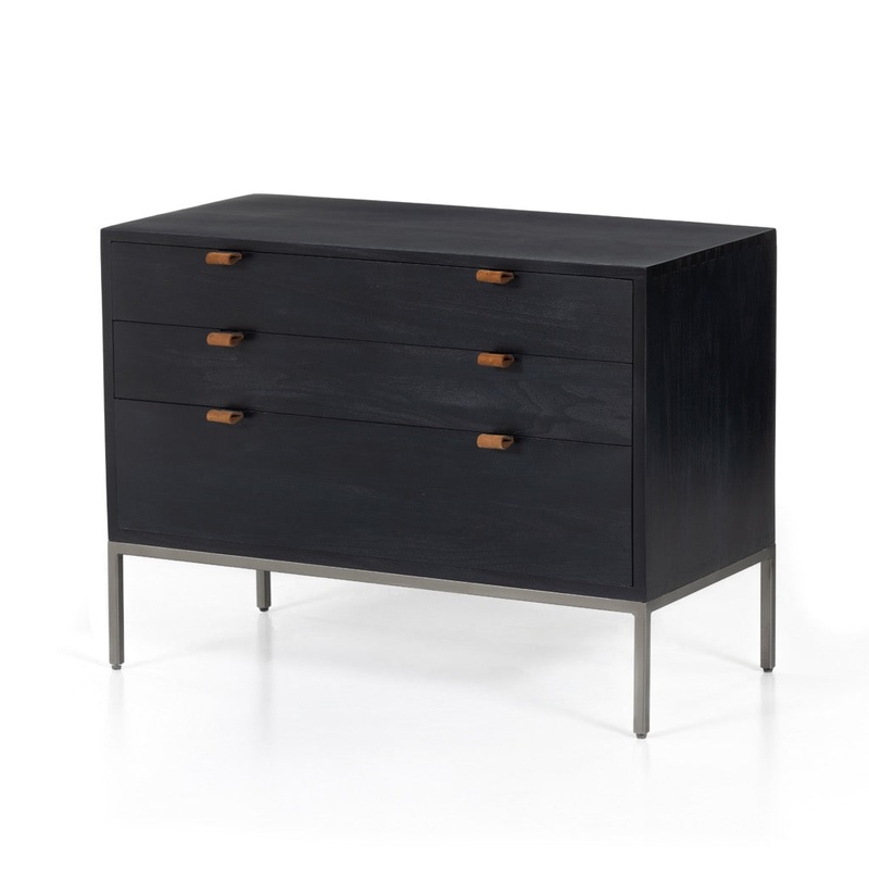 Simple style, inspired by midcentury dcor. Made from black-washed poplar, a roomy three-drawer nightstand brings extra storage space to the bedside. Top-grain leather pulls add a textural finishing touch.