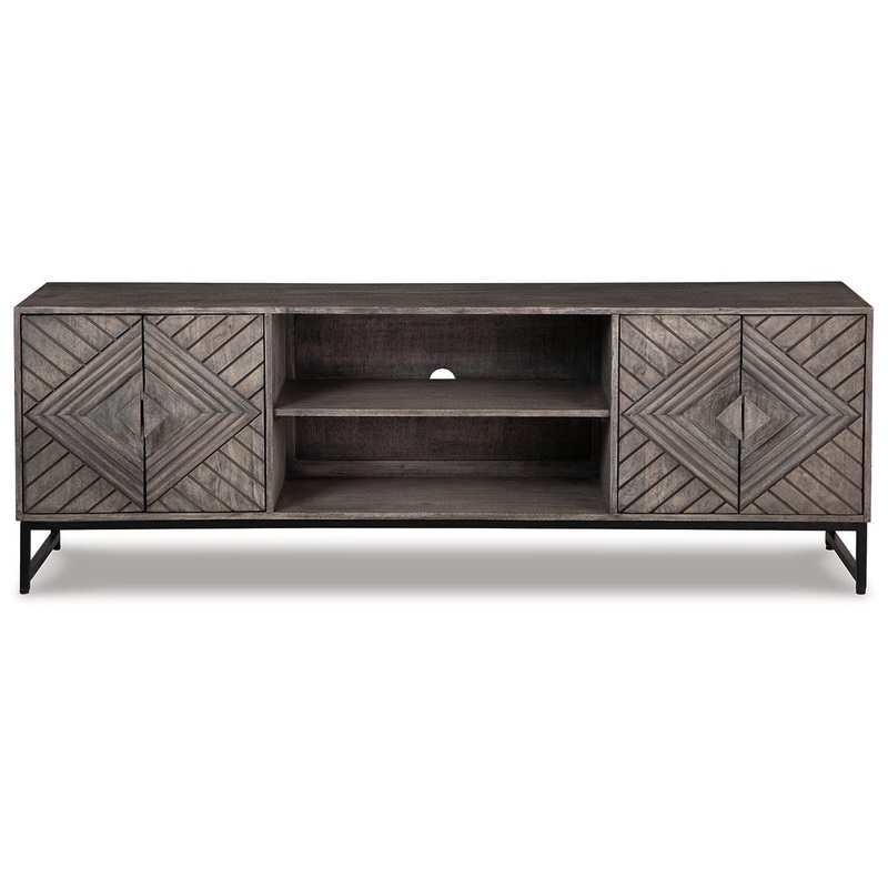 For admirers of understated vintage glamour, this accent cabinet beautifully complements your desired aesthetic. The classic charm of a distressed gray finish meets chic metropolitan styling, with art deco-inspired door fronts and an industrial black metal base. A balanced blend of contemporary and casual design, this piece is the personification of laid-back luxury.