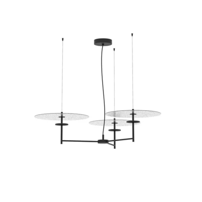Trezero - Suspension LampTrezero is a pendant lamp designed by Alberto Nason and produced by the brand Hind Rabii.Hind Rabii offers the Trezero lamp, a pendant lamp characterised by three large Murano glass discs and matt black finishes. The unusual shaped