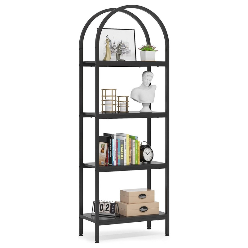 Modern Stylish Design: The stylish top-curved design adds a delicate aesthetic to the entire bookshelf. Clean line and wood grain texture make this industrial etagere bookcase suit for anywhere