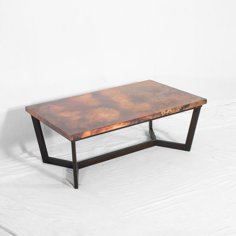 Clean lines meet a mix of metals and bring semi-rustic styles into your modern home with the Trico Long Coffee Table. The Natural w/ Spots copper patina is stunning in any setting.*As eachTrico coppercoffee table is hand-crafted on a made-to-order basis, p