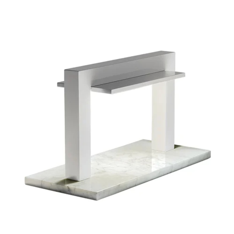 Trilite is a particular table lamp designed by the designer Franco Raggi and produced by the brand Firmamento Milan. Marble base. Lacquered wood support. Diffuser in polished aluminum.Trilite is a micro chamber architecture. Today architectures are sometimes thought of as urban and intrusive maxi-objects. Trilite is the inverse: small table architecture for an eclectic and discontinuous domestic landscape, a small portal of light that illuminates discreetly around itself. The base is of important marble, the portal is glossy red lacquered while the light is diffused by a thin aluminum tile. For the “less” lovers there is also the white version.Light source: Led / 2x10W / 24V / 1776 Lumen / 80 Cri / 2700 K / A ++.Colors: White and Green Forest.