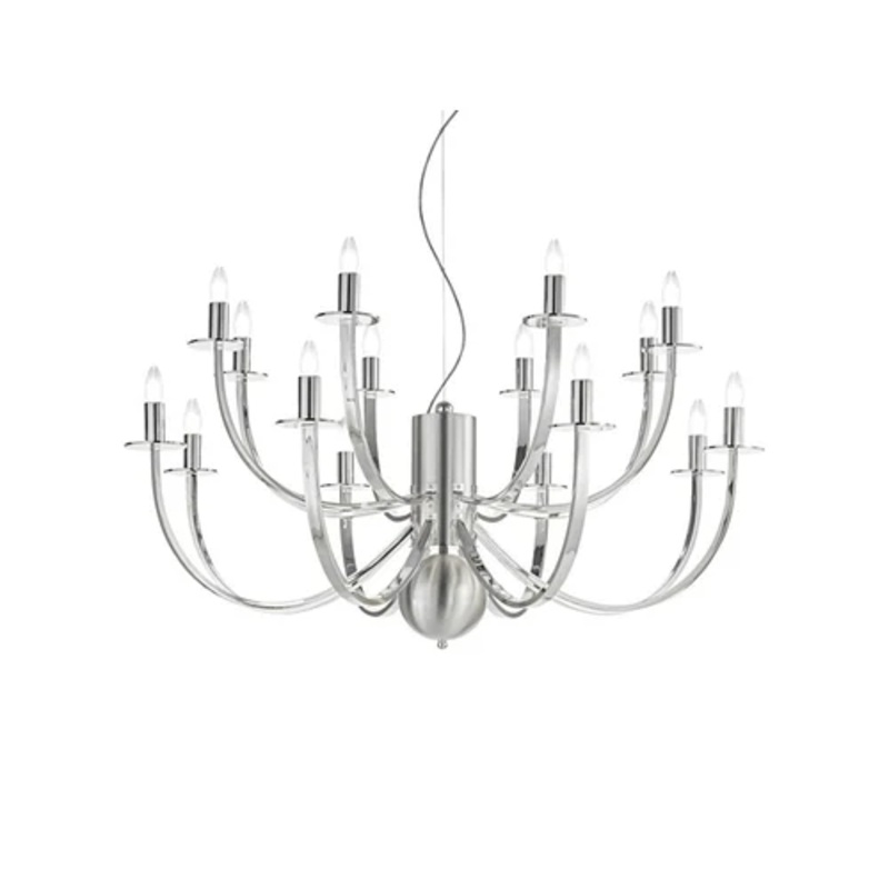 Class and elegance are two concepts that the MM Lampadari brand has conveyed to this beautiful suspension lamp. The creation by the designer Guiotto is able to create a refined atmosphere in any place. Trimming is characterised by a wide and robust metal body made up of 16 curved arms, on which 16 light sources are located. This suspension lamp makes any interiors unique and special, whether a living area or a hospitality setting.