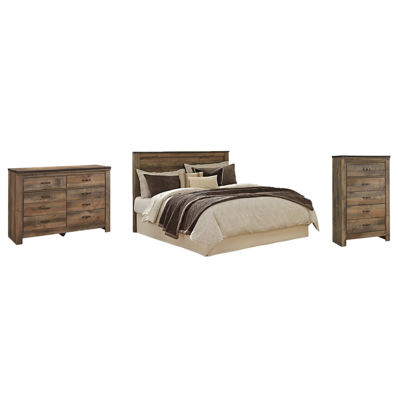 Trinell King/California King Panel Headboard with Mirrored Dresser and Chest
