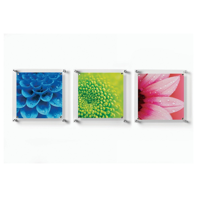 Design with the the power of threes. Ideal for photos, kids art, signs, posters, keepsakes, and anything you want to change easily and often. Fit items up to 12×12″. Try theming them out with scrapbook pages! Easy to hang and effortless to use, they look great with any decor because your art takes center stage. Each frame consists of a single, light weight, sheet of acrylic that exhibits your piece, and our Impressively Strong Magnets hold it in place. These magnets are powerful enough to hold up to 10 pages or 3lbs per pair – wow!