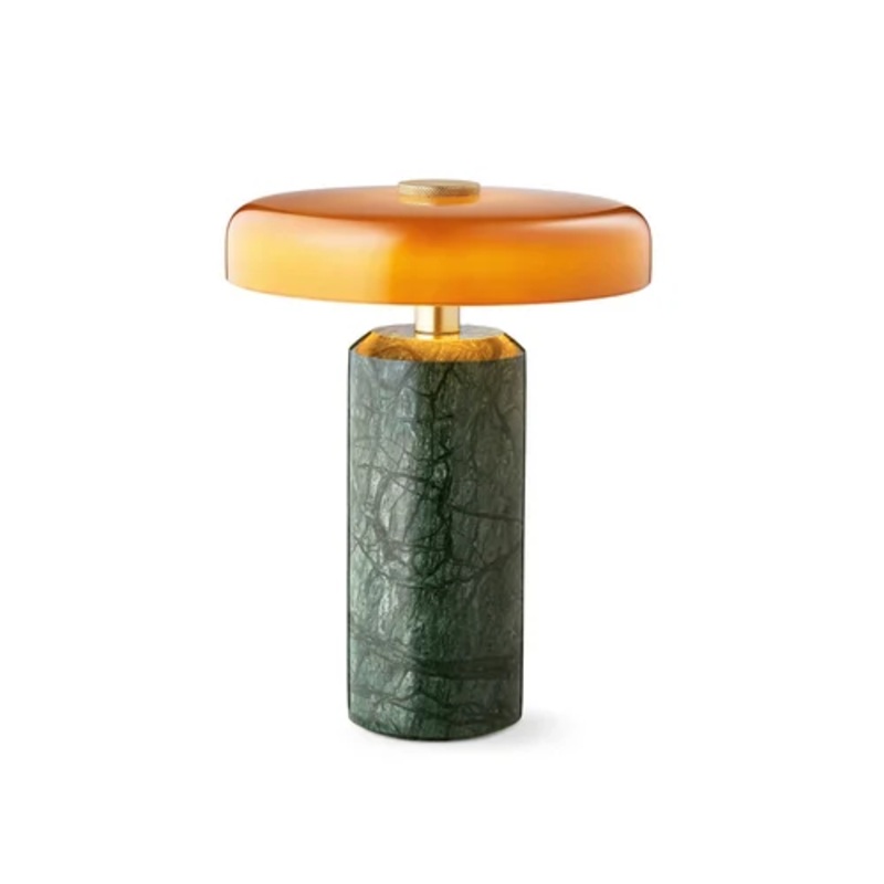 Trip consist of a glass shade that can be either glossy or matt and a polished marble body with brass details on top. The marble base holds the battery which can be charged via the included wireless charger. The charger functions as an extension of the lamp, so that it looks beautiful even when charging. Design By Us has thought about every detail in our new take on the portable, rechargeable LED lamp. The sculptural design with polished marble and mouth blown glass gives Trip a particular exclusive look. The lamp is supplied with a wireless charger and a black braided fabric usb-a/usb-c cable.