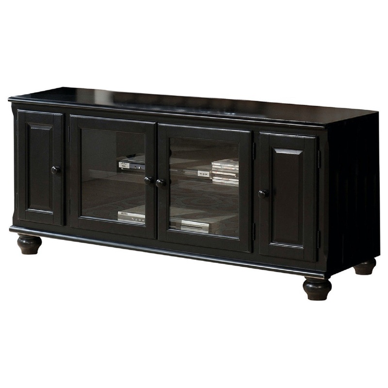 The transitional style of this TV stand will blend masterfully in your living room area. The storage feature offers plenty of space to keep your entertainment components: two glass doors, and two wooden doors. Carefully constructed from selected wood and veneers in rich black finish giving this piece a stunning and sleek appeal.