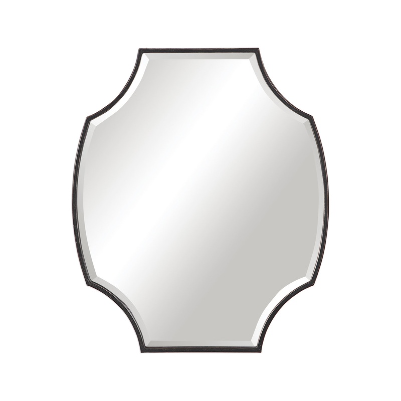 This Unique Metal Mirror Features Scalloped Corner Detailing, Finished In A Dark Rustic Bronze With Gold Highlights And An Aged Gray Wash. A Considerable 1 1/4" Bevel Surrounds The Mirror. -Materials:MDF, METAL, MIRROR -Collection: Ulalia -Designer: David