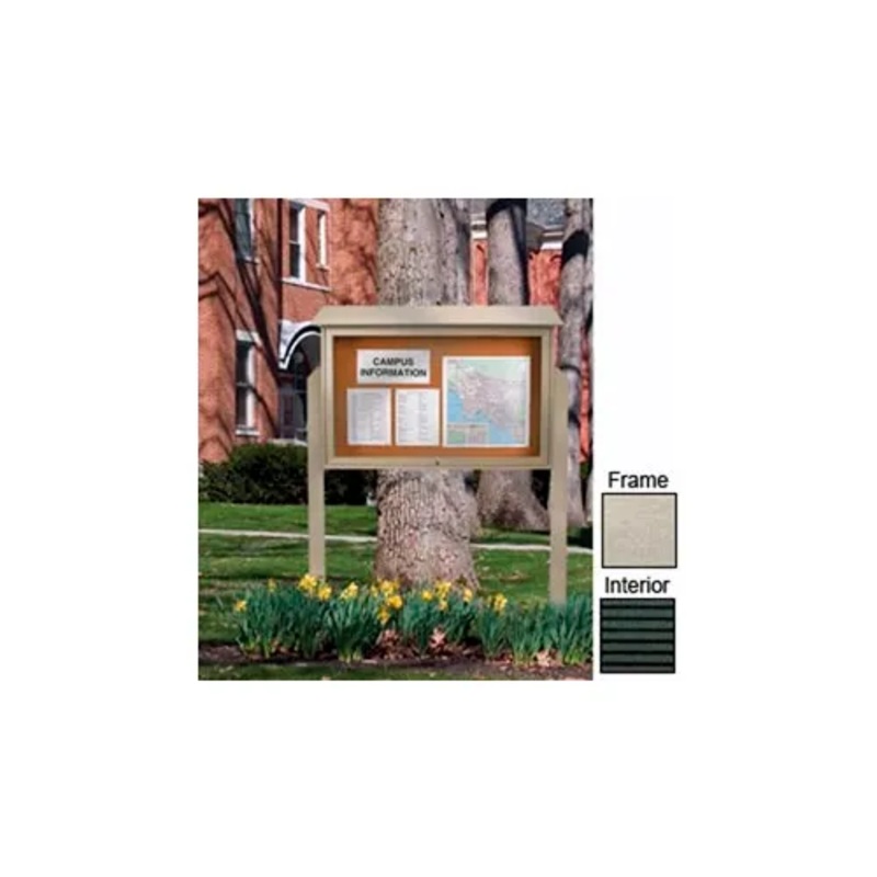 This Top-Hinged Single Door Message Center features a large door to display important messages. Letter board units include a 145-piece 2″ Helvetic letter/number set. Lockable door top mounted on a full length piano hinge (two keys included). Heavy-duty construction for years of use. Will not rot, splinter or crack with the high density polyethylene construction. Finished back panel looks great on posts and adds structural integrity. Removable interior surface. Posts optional – please order separately. Case Dimensions: 3/4″ wide main frame, 1-1/2″ wide door frame, 5-1/2″ exterior depth, 3-3/4″ interior depth, 8-1/2″ rain cover depth. Includes 1 top-hinged door. Black interior, Light Gray frame finish. 52″W x 40″H overall.