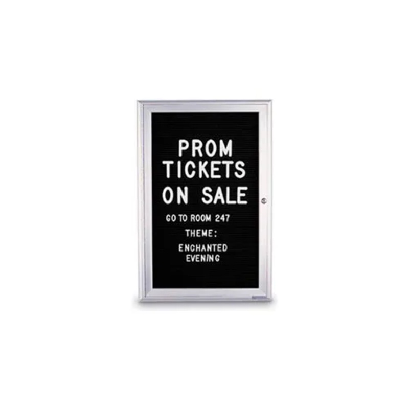 United Visual Products 24"W x 36"H 1-Door Indoor Enclosed Letter Board with Radius FrameThis Radius Framed Letterboard features a sleek radius frame to accentuate messages. Satin Anodized aluminum frame has radius edges and mitered corners. Attractive blac