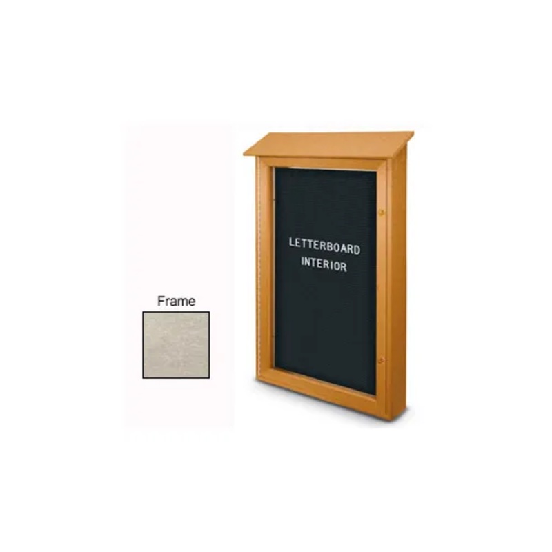 United Visual Products 38" x 54" Single Door Letter Board Message Center with Light Gray FrameMade of rot, splinter and crack resistant, recycled high density polyethylene for long lasting durability. Lockable door is side-mounted on full length piano hing
