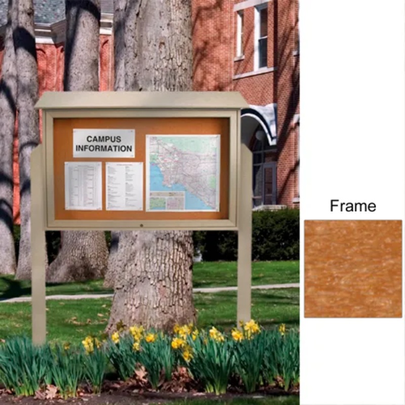 United Visual Products 45″W x 30″H Cork Top-Hinged Single Door Message Center with Cedar Frame
