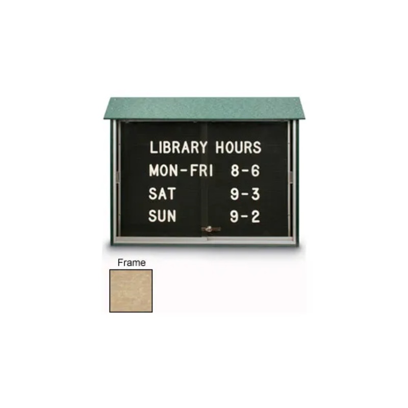 United Visual Products 45" x 36" Letter Board Sliding Door Message Center with Sand FrameThis Sliding Door Message Center features sliding doors which roll on nylon wheels with minimal effort. Heavy-duty construction for years of use. Will not rot, splinte