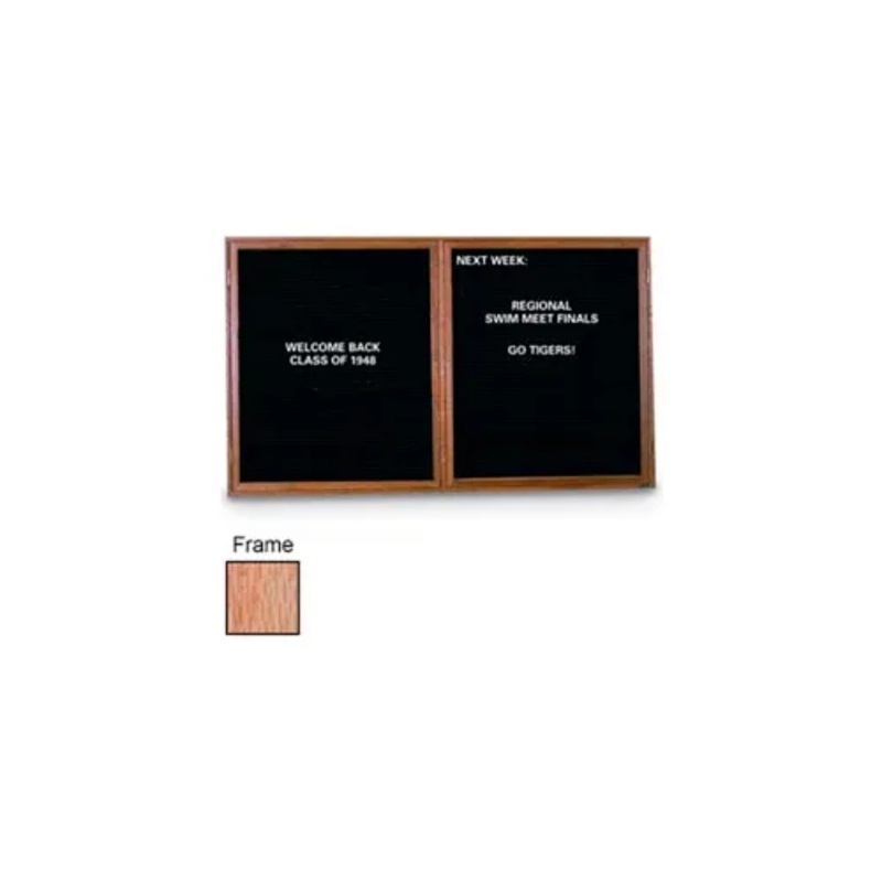 United Visual Products 48"W x 36"H 2-Door Indoor Wood Enclosed Letter Board with Light Oak FrameThis Indoor Enclosed Letterboard is constructed of a solid oak frame. Black felt letterboard interior. 290 piece Helvetica letter set included. Shatter-resistan