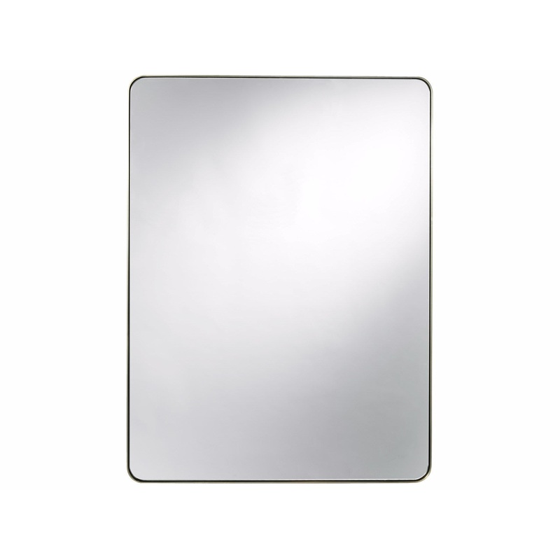 A small and delicate metal frame encases a rectangular center in the Modern Accent Mirror, available in brushed brass.