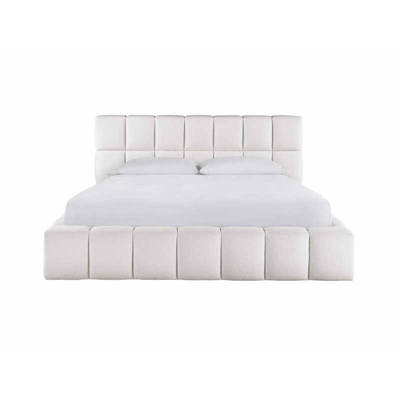 Center bedroom dwellings with the Upholstered Platform Bed, a comfort-forward piece formed with a series of rolled cubes in a plush fabric.