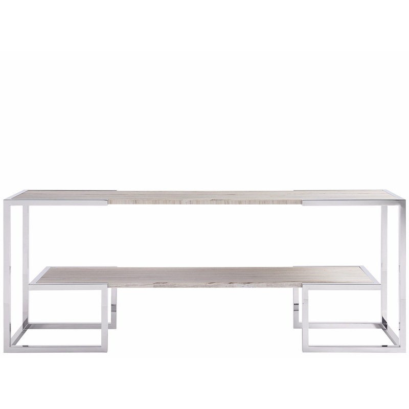 With a gentle nod to geometric lines, the Paradox Console is a playful home accent built with two open-air inset stone shelves framed by a cool stainless steel body.
