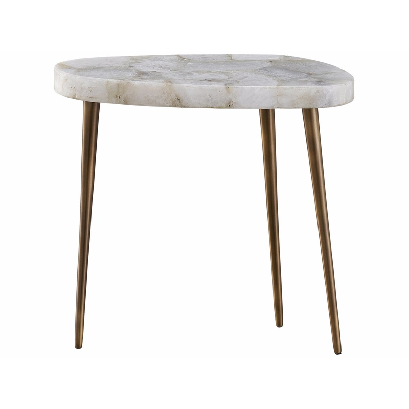 Infuse spaces with an elemental elegance. An intricate agate top is offset by sleek antique satin brass legs.