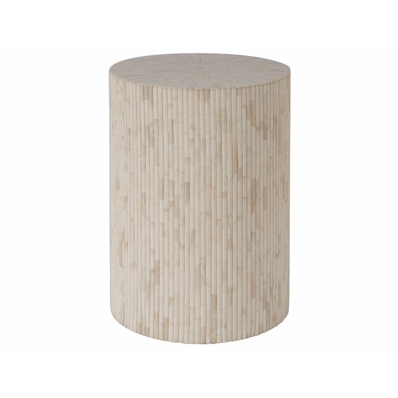 The Marcella Table captivates with its rounded silhouette, fully enveloped in Natural Bone, showcasing organic ridges that lend a light and airy essence. Its modern design is highlighted by subtle variations in tone, creating a piece that’s as visually intriguing as it is elegantly crafted, perfect for adding a touch of refined natural beauty to any space.