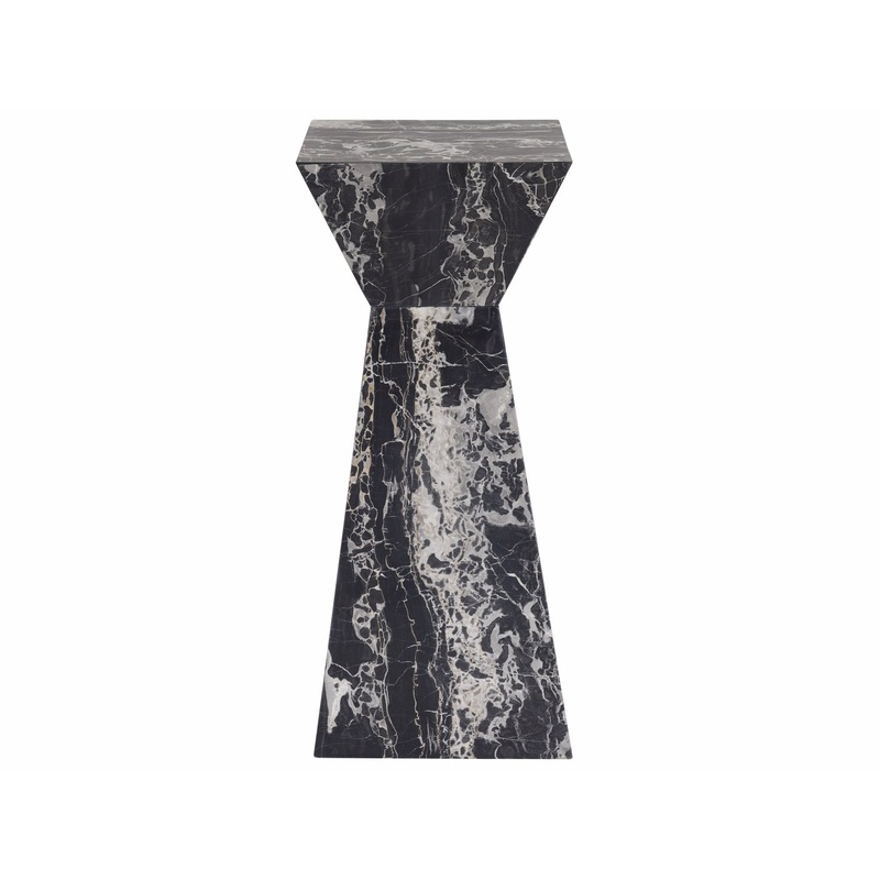 The Mowry Spot Table, sculpted from the richly veined Golden Portoro Marble, presents a captivating geometrical silhouette that effortlessly commands attention. The intricate marbling patterns engage the senses, drawing the eye and imbuing any setting with a tranquil yet compelling elegance.