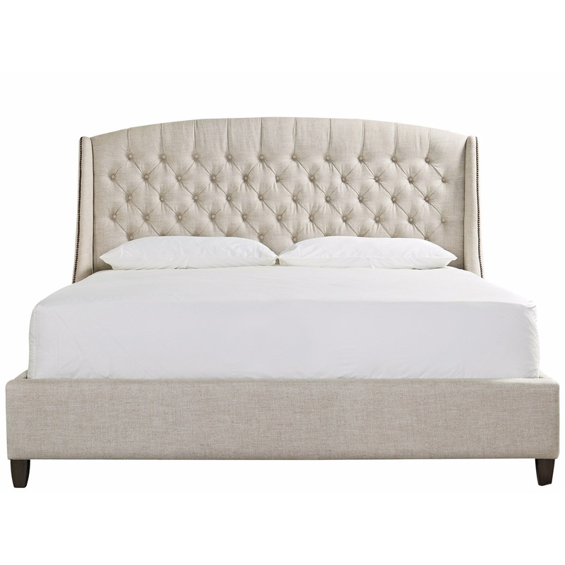 The elegant Halston Bed features a winged button-tufted frame and is finished with a delicate nail head trim.