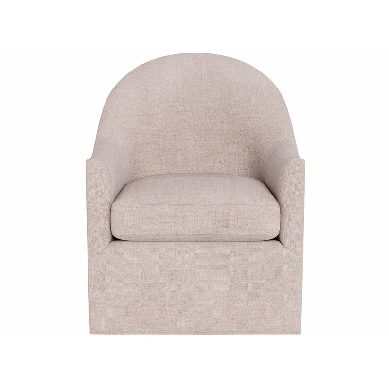 Distinctively modern, the Roscoe Swivel Chair features a perfectly rounded back with delicate nailhead side accents perched atop a convenient swivel base.
