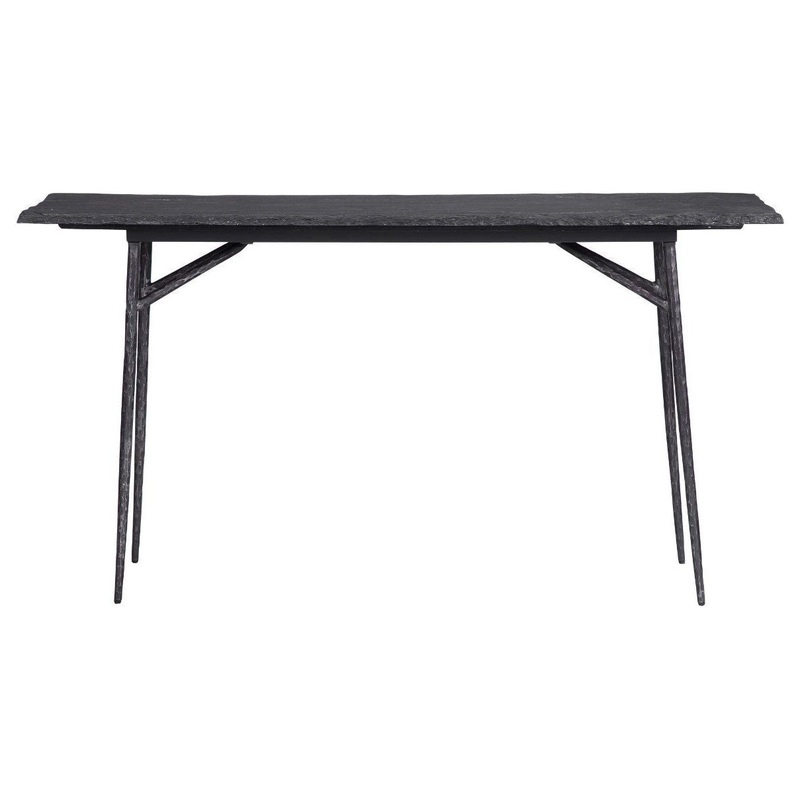 Showcasing A Modern Industrial Look, This Console Features Naturally Textured Black Slate With Organic Broken Edges. Rests On An Iron Trestle Base With Chiseled Details Finished In Aged Black. Each Top Will Have Naturally Occurring Color Variations Such As