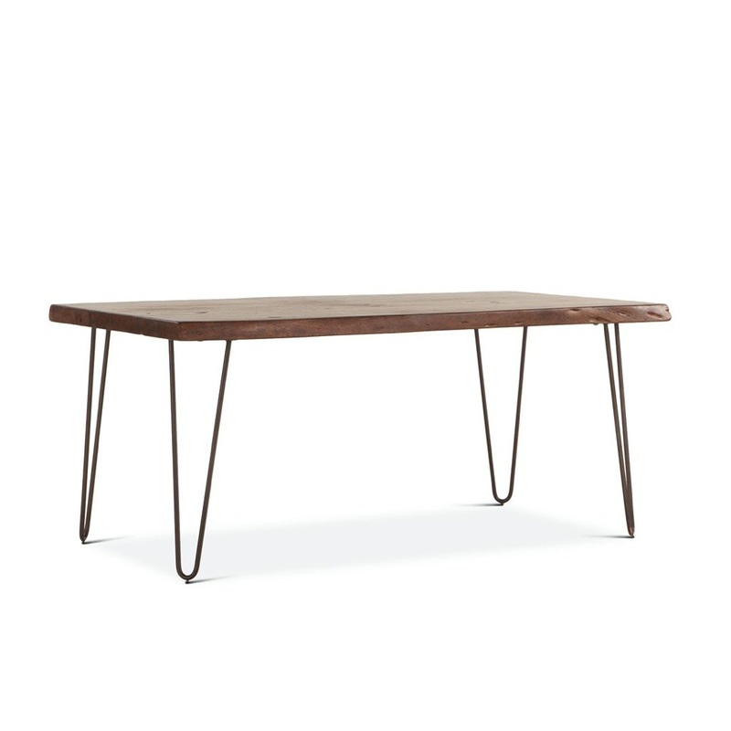 The clean lines and simplicity of theVail Dining Table exemplifies the mid-century modern era. With a live edge and dynamic wood grain, the solid plantation grown Acacia wood top is the highlight of this piece, creating a look for your dining area that is