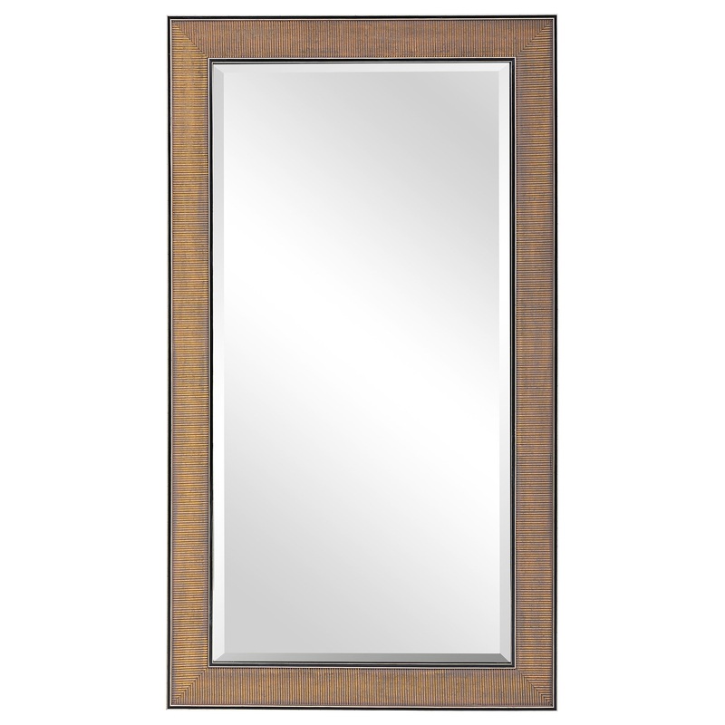 Art-deco Influences Are Displayed In This Design That Features Linear Texture Finished In Antiqued Gold With Rust Glaze Paired With Bold Satin Black And Silver Highlights. The Beveled Mirror May Be Hung Horizontal Or Vertical.