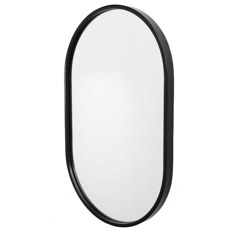 -This Iron Oval Features A Sleek Satin Black Finish And Linear Details. May Be Hung Horizontal Or Vertical. -Material: Mdf, Iron, Mirror -Mirror/Glass Depth: 0.157 -Mirror/Glass Width: 19.75 -Mirror/Glass Height: 31.75 -Overall Depth: 1.5 -Overall Width: 2