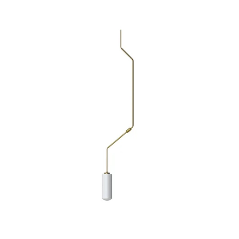 The Ventus lamp is a collaboration between the Danish designers Included Middle and the Frama Brand. This beautiful pendant combines simplicity and creativity at the same time without neglecting functionality. The irregular geometrically shaped cable is made of brass and the diffuser of white opal glass. Ventus fits nicely over a dining table or in the corners of rooms, giving a unique and inimitable touch of style.