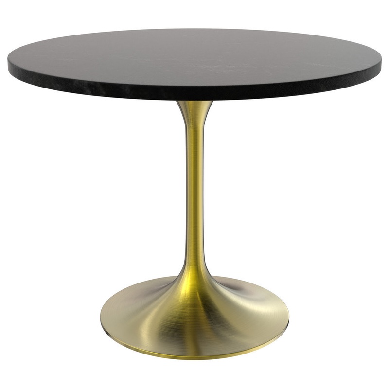 Verve 36 Round Dining Table, Brushed Gold Base with Black MDF Top – Contemporary – Dining Tables – by Bison Commerce