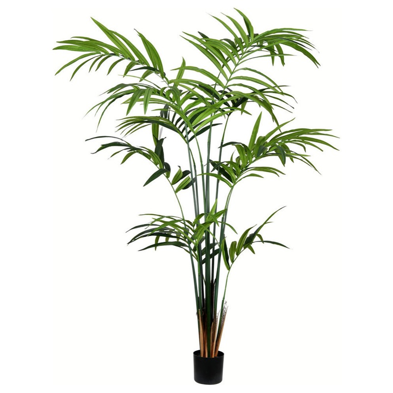 Vickerman 8′ Artificial Potted Kentia Palm Tree. Transform your indoor space into a tropical oasis with Vickerman’s 8-foot Tall Faux Potted Palm Tree. This lifelike artificial tree is the perfect addition to any home or office, bringing the beauty of nature indoors without the hassle of maintenance. The sturdy black planter pot ensures that your faux palm tree will stand tall and look amazing in any room. Crafted with attention to detail, this large artificial tree boasts 150 realistic leaves, making it the perfect choice for adding a touch of greenery to any corner of your indoor space. From living rooms and bedrooms to lobbies and conference rooms, this maintenance-free faux floor plant is the ideal solution for those who want the beauty of a tall fake plant without the upkeep. Looking for the perfect artificial tree for your indoor space? Look no further than our realistic indoor palm trees. With their lifelike appearance and easy care, they’re the perfect choice for anyone looking to add a touch of natural beauty to their decor. Whether you’re in search of an indoor faux palm tree or an artificial tree to add some vitality to your living room, this palm tree is sure to impress.