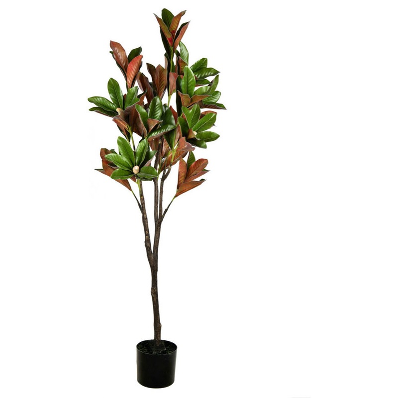 Vickerman 6′ Magnolia Tree in Pot. Add a touch of artistry to any dcor with this Beautiful Green Magnolia Tree fixed in a Black Plastic Planters Pot. The Pot Measures 7″H x 7″W x 6″D.