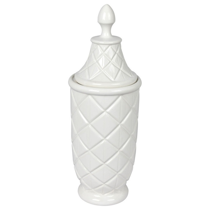 Vickerman White Ceramic Container with Lid, 18.5″ – Traditional – Decorative Jars And Urns – by Vickerman Company