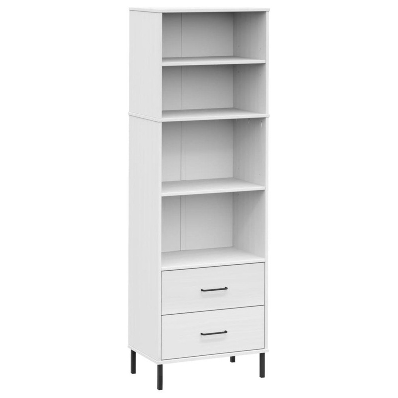 vidaXL Bookcase with 2 Drawers White 23.6″x13.8″x70.9″ Solid Wood OSLOThis wooden bookcase provides an ideal solution for organizing your books and will add a touch of rustic charm to your interior.Durable material: Solid pine wood is a beautiful natural material. Pine wood has a straight grain, and the knots give the material its signature, rustic look.Ample storage space: This book shelf has 4 compartments and 2 drawers, providing ample space for keeping your collection of books, magazines, and documents in good order.Metal feet: The metal feet of this book storage ensure sturdiness and stability.Warning:In order to prevent overturning, this product must be used with the wall attachment device provided.Note:Each product comes with an assembly manual in the box for easy assembly.