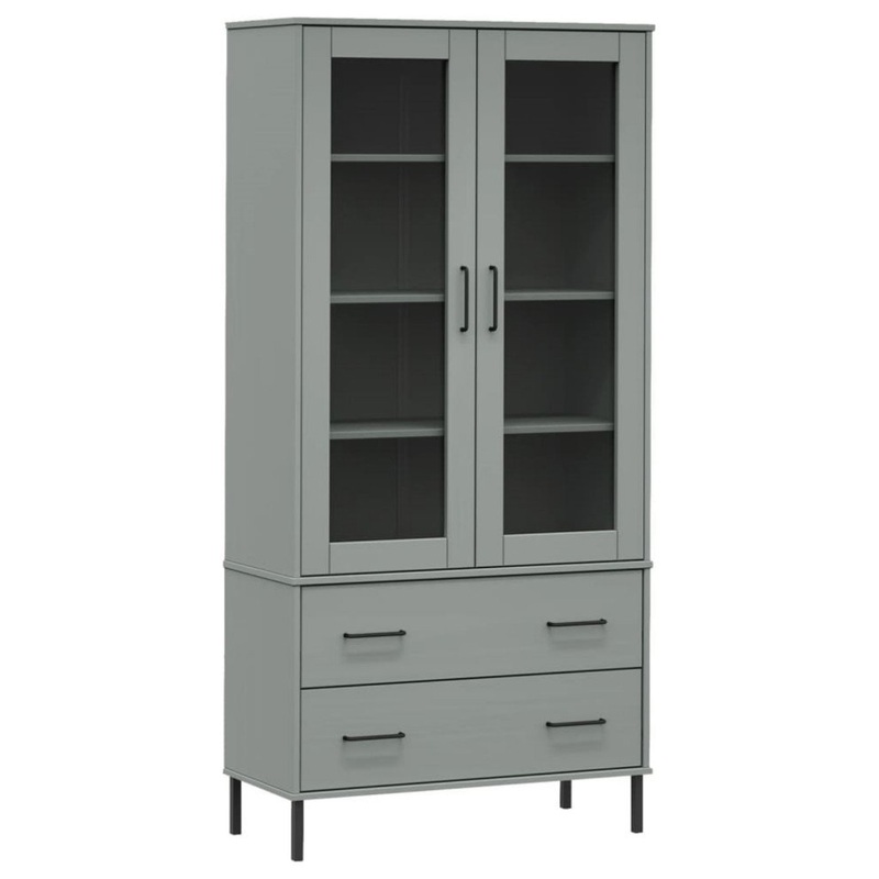 vidaXL Bookcase with Metal Legs Gray 33.5″x13.8″x67.9″ Solid Wood OSLOThis wooden bookcase provides an ideal solution for organizing your books and will add a touch of rustic charm to your interior.Durable material: Solid pine wood is a beautiful natural material. Pine wood has a straight grain, and the knots give the material its signature, rustic look.Ample storage space: This book shelf has 4 compartments and 2 drawers, providing ample space for keeping your collection of books, magazines, and documents in good order.Practical doors: Keep your collections free from dust by hiding them behind the door of this book storage.Metal feet: The metal feet of this book case ensure sturdiness and stability.Warning:In order to prevent overturning, this product must be used with the wall attachment device provided.Note:Each product comes with an assembly manual in the box for easy assembly.
