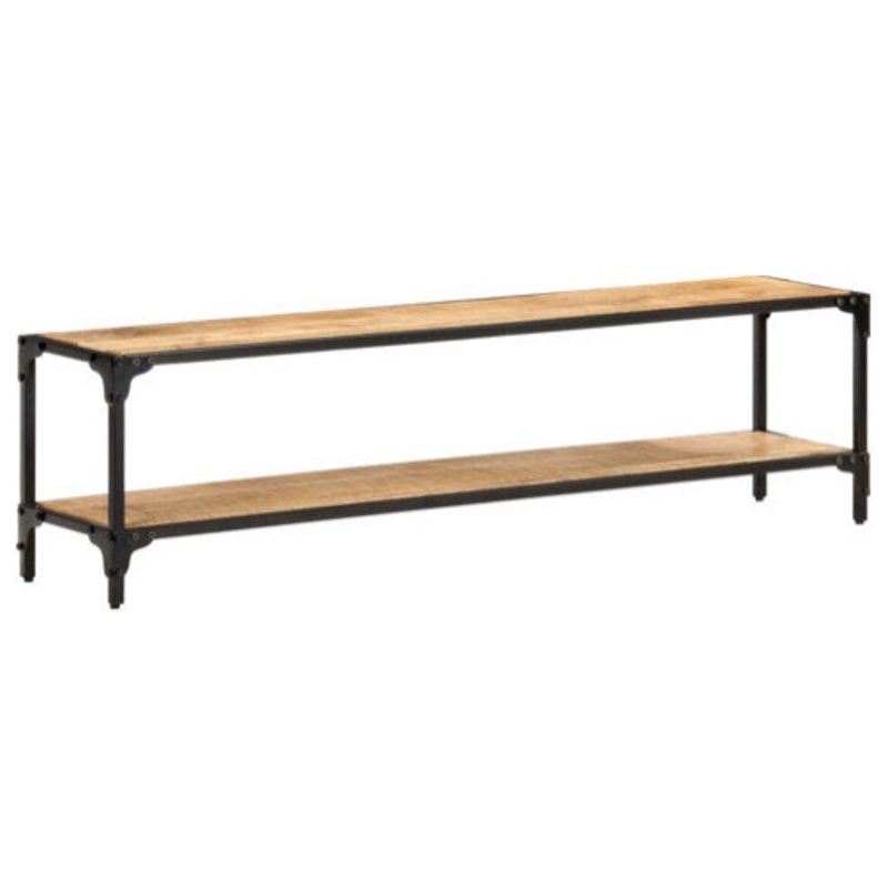 Add a simple yet antique appearance to your existing living space with this eye-catching TV cabinet. This HiFi cabinet is made of mango wood which is solid, stable, durable and beautiful. The craftsmanship adds to its spectacular retro style. The mango wood is treated in a distinctive method to make it more wear-resistant while still allowing it to keep its natural charm. This stand features two open shelves to store or display your media devices, books, magazines, etc. The steel frame with powder coating ensures excellent stability. Colors and grain patterns may vary from piece to piece, making each of our TV cabinets unique. The delivery is random as well.