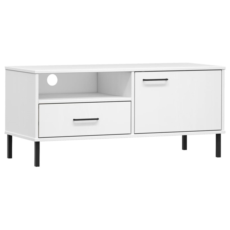 -VidaXL TV Cabinet with Metal Legs White Solid Wood Pine OSLO