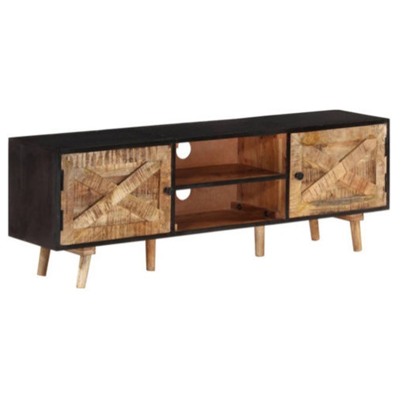 This unique wooden TV cabinet is meant to be an excellent choice for your bedroom and living room! The HiFi cabinet is made of rough mango wood and solid acacia wood, so it has the great strength to bear the weight and stands the wear and tear of time, mak